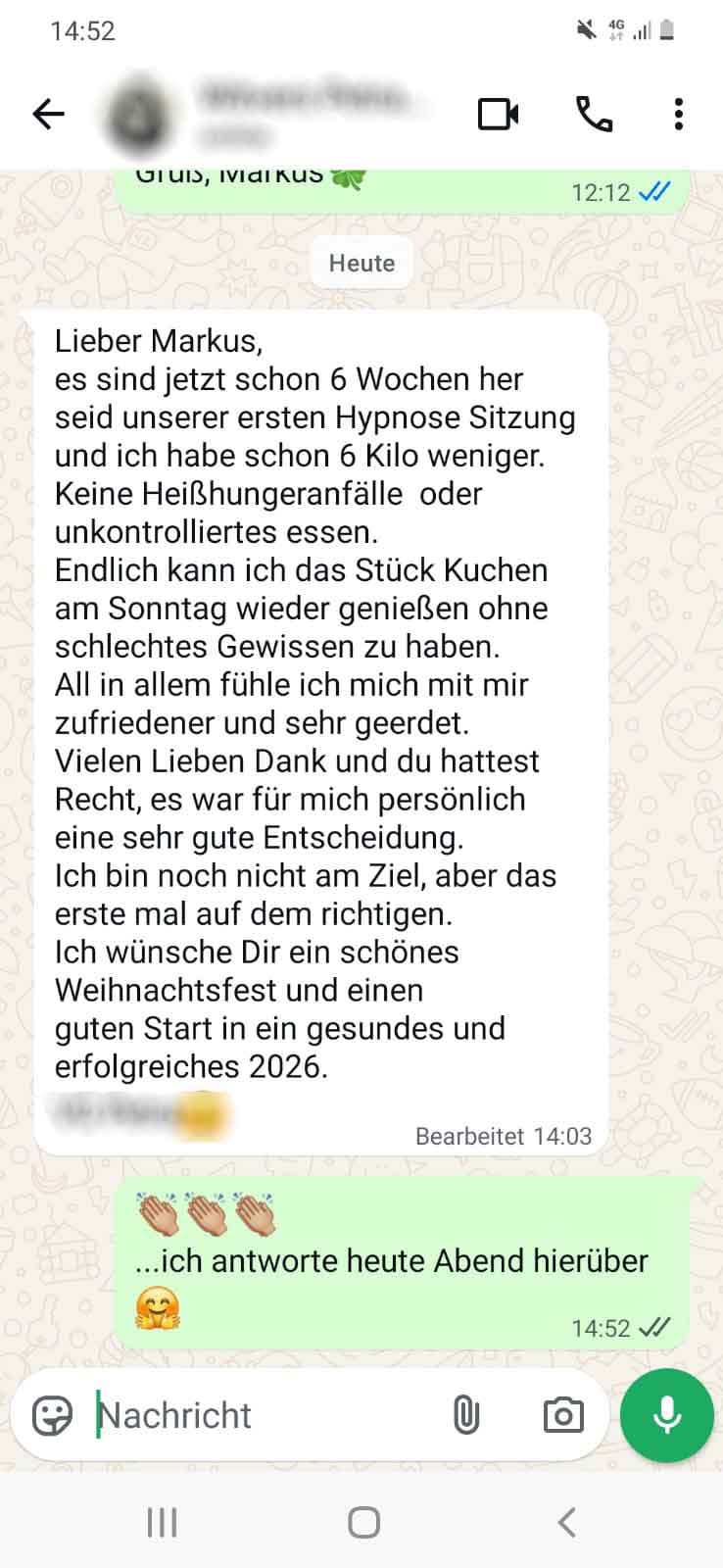 Mit meinem ganzheitlichen, wissenschaftlich fundierten Ansatz helfe ich Ihnen dabei, Ihre individuellen Herausforderungen zu bewältigen. Viele meiner Klienten berichten bereits nach einer Sitzung von beeindruckenden Erfolgen – lesen Sie gerne einige dieser anonymisierten Erfahrungsberichte unter meinen Bewertungen.